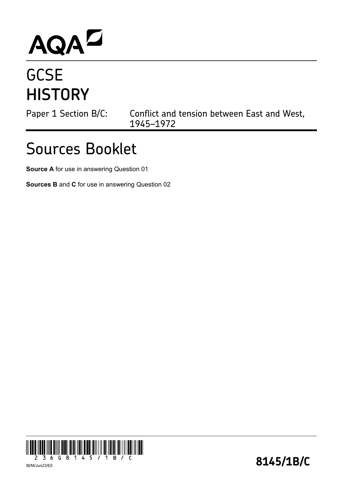 AQA GCSE HISTORY PAPER 1 Sources Booklet 2023 (8145/1B/C: Conflict and tension between East and West, 1945–1972)