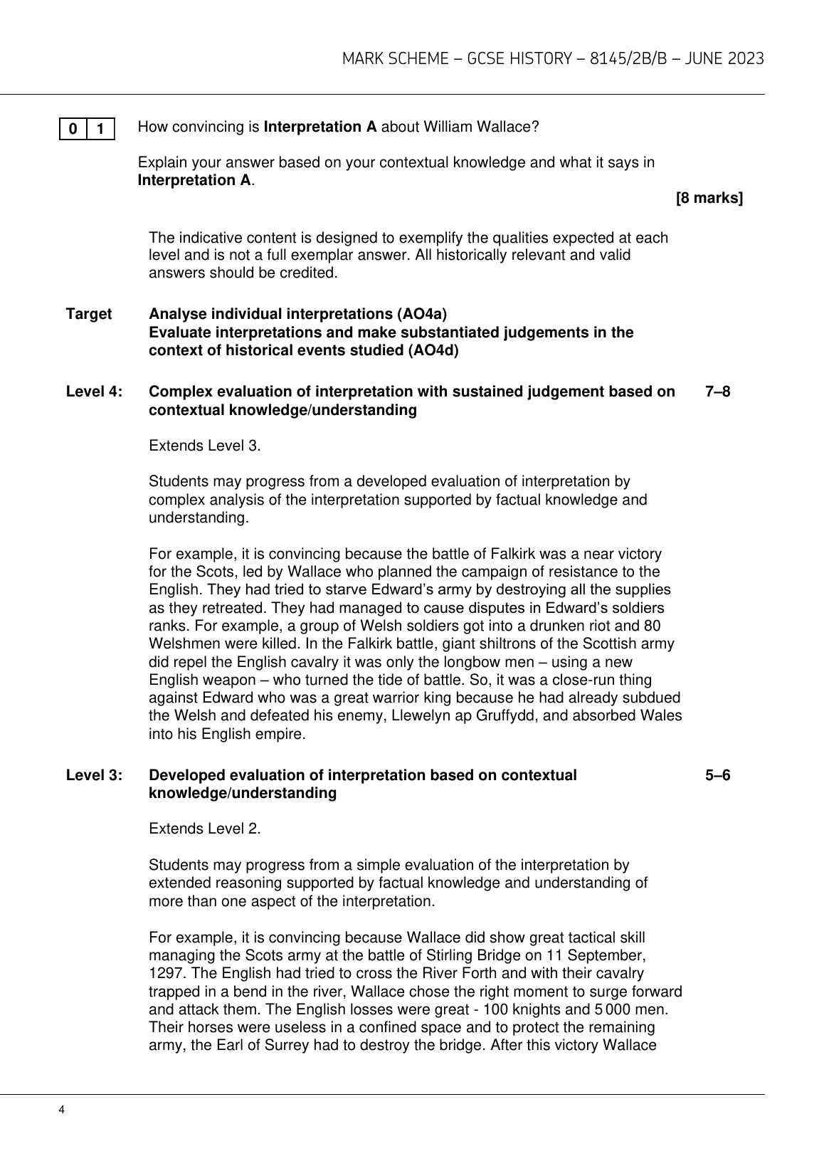 AQA GCSE HISTORY PAPER 2 MARK SCHEME 2023 (8145/2B/B: Medieval England: the reign of Edward I, 1272–1307)