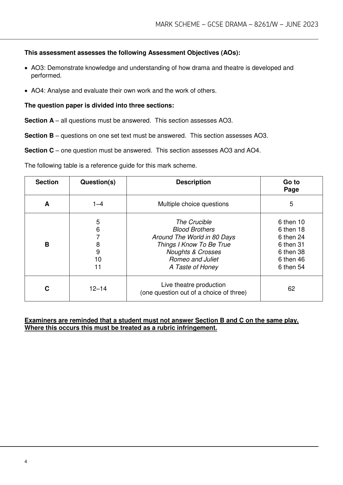 AQA GCSE DRAMA PAPER 1 MARK SCHEME 2023 (8261/W: Understanding Drama)