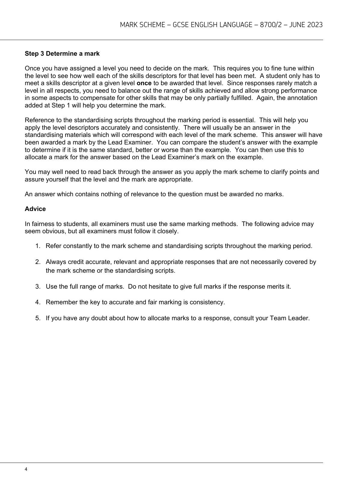 AQA GCSE ENGLISH LANGUAGE PAPER 2 MARK SCHEME 2023 (8700/2: Writers’ viewpoints and perspectives)