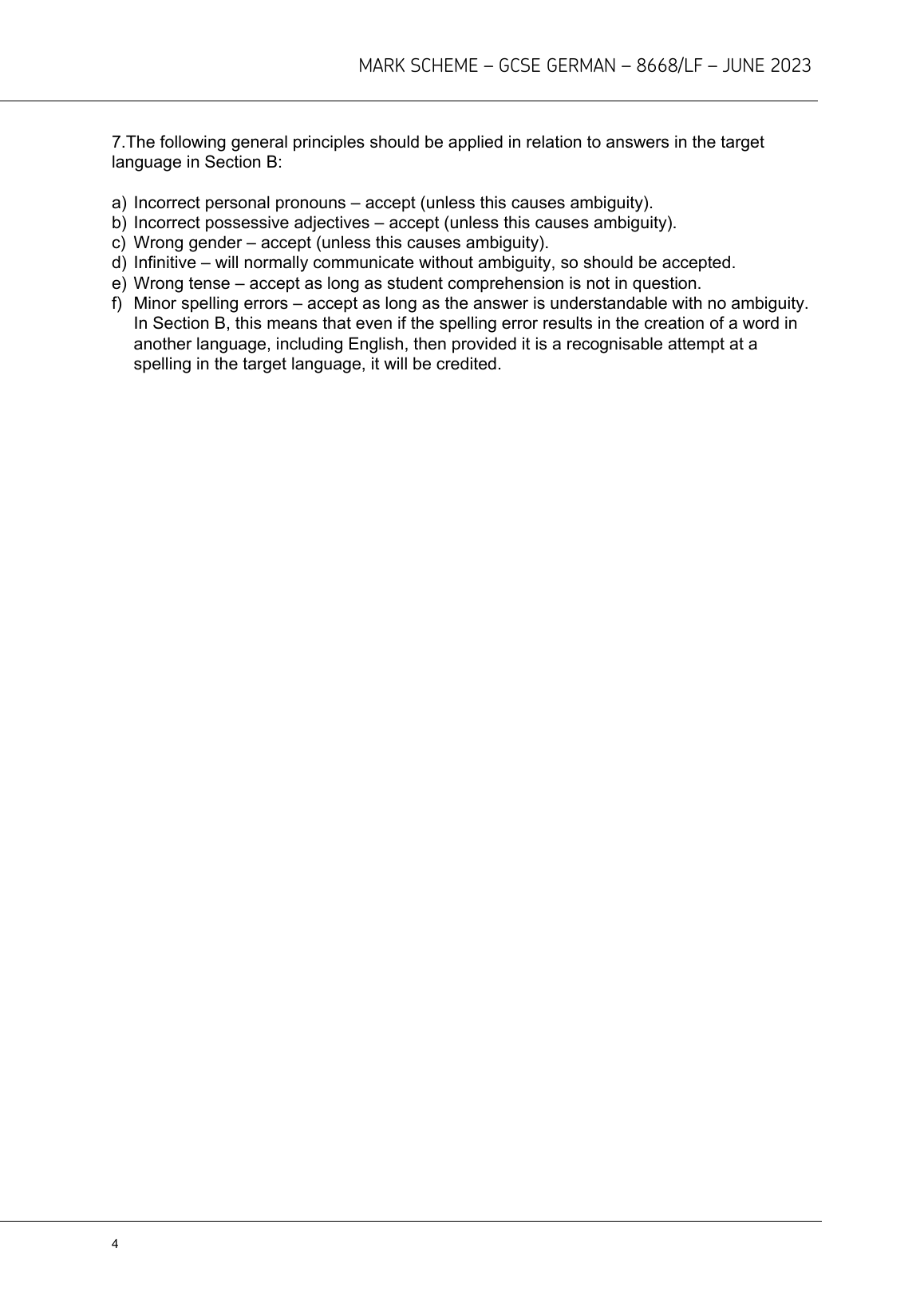 AQA GCSE GERMAN PAPER 1 MARK SCHEME 2023 (8668/LF: Listening Foundation Tier)