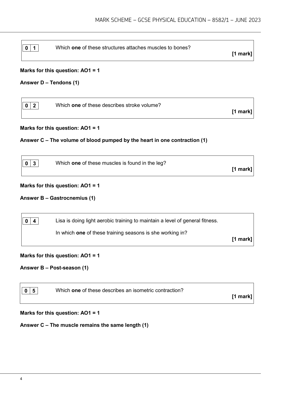 AQA GCSE PHYSICAL EDUCATION PAPER 1 MARK SCHEME 2023 (8582/1: The human body and movement in physical activity and sport). DOWNLOAD OFFICIAL AND VERIFIED AQA GCSE PHYSICAL EDUCATION PAPER 1 MARK SCHEME 2023 ON www.leakedexams.com.