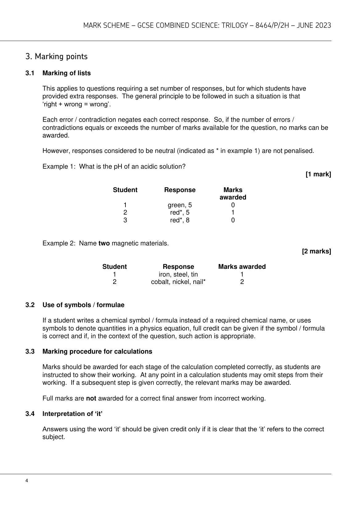 AQA GCSE COMBINED SCIENCE: TRILOGY PAPER 2 MARK SCHEME 2023 (8464/P/2H: Physics - Higher Tier)