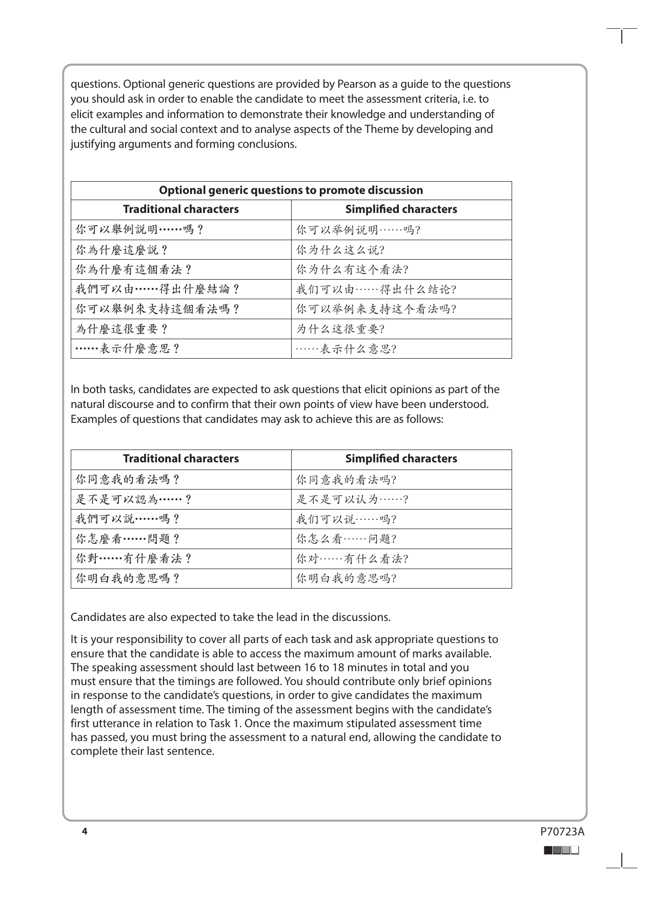 PEARSON EDEXCEL A LEVEL Chinese PAPER 3 2023 QUESTION PAPER (9CN0/03: Speaking)