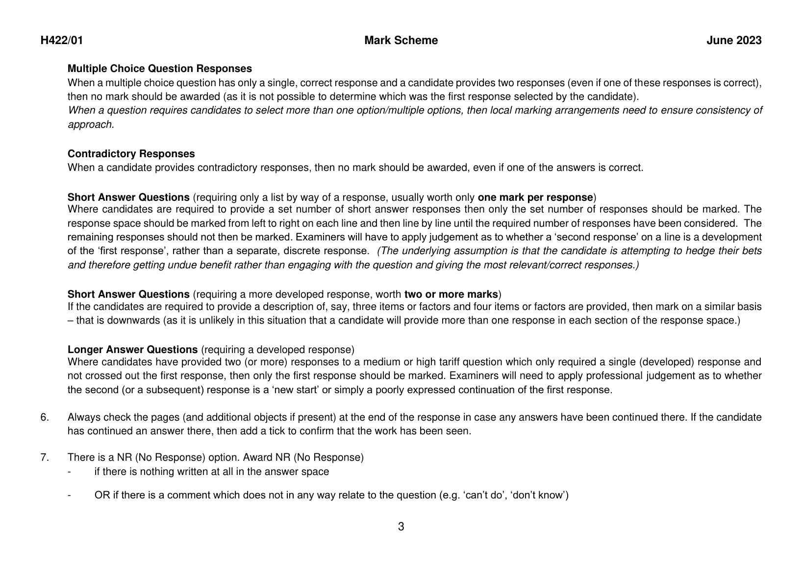 OCR GCE A LEVEL BIOLOGY B PAPER 1 MARK SCHEME 2023 (H422/01: Fundamentals of biology)