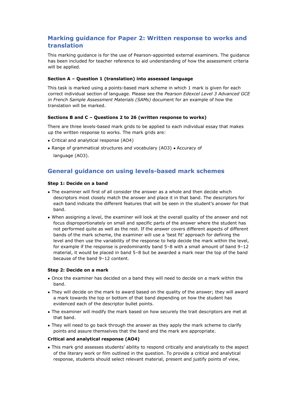 PEARSON EDEXCEL A LEVEL French PAPER 2 2023 MARK SCHEME (9FR0/02: Written Response to works and translation). DOWNLOAD OFFICIAL AND VERIFIED EDEXCEL PEARSON A LEVEL French PAPER 2 2023 MARK SCHEME on www.leakedexams.com INSTANTLY.