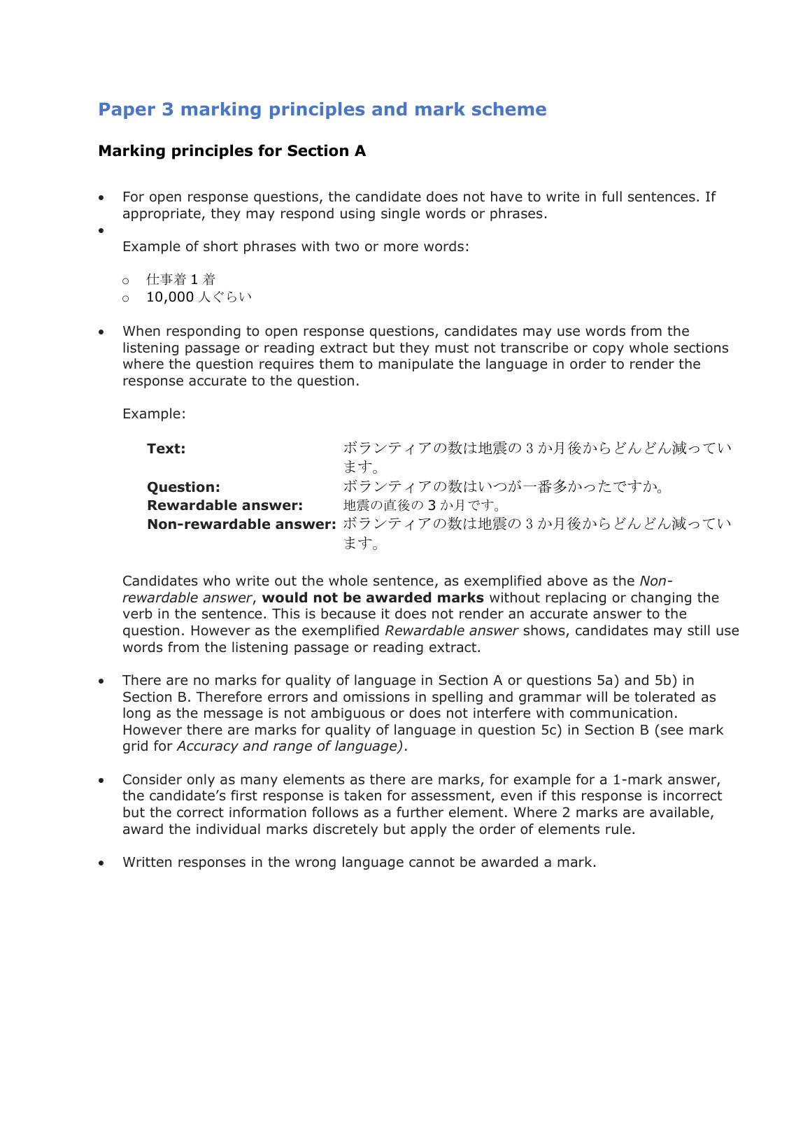 PEARSON EDEXCEL A LEVEL Japanese PAPER 3 2023 MARK SCHEME (9JA0/03: Listening, reading and writing). DOWNLOAD OFFICIAL AND VERIFIED EDEXCEL PEARSON A LEVEL Japanese PAPER 3 2023 MARK SCHEME on www.leakedexams.com INSTANTLY.