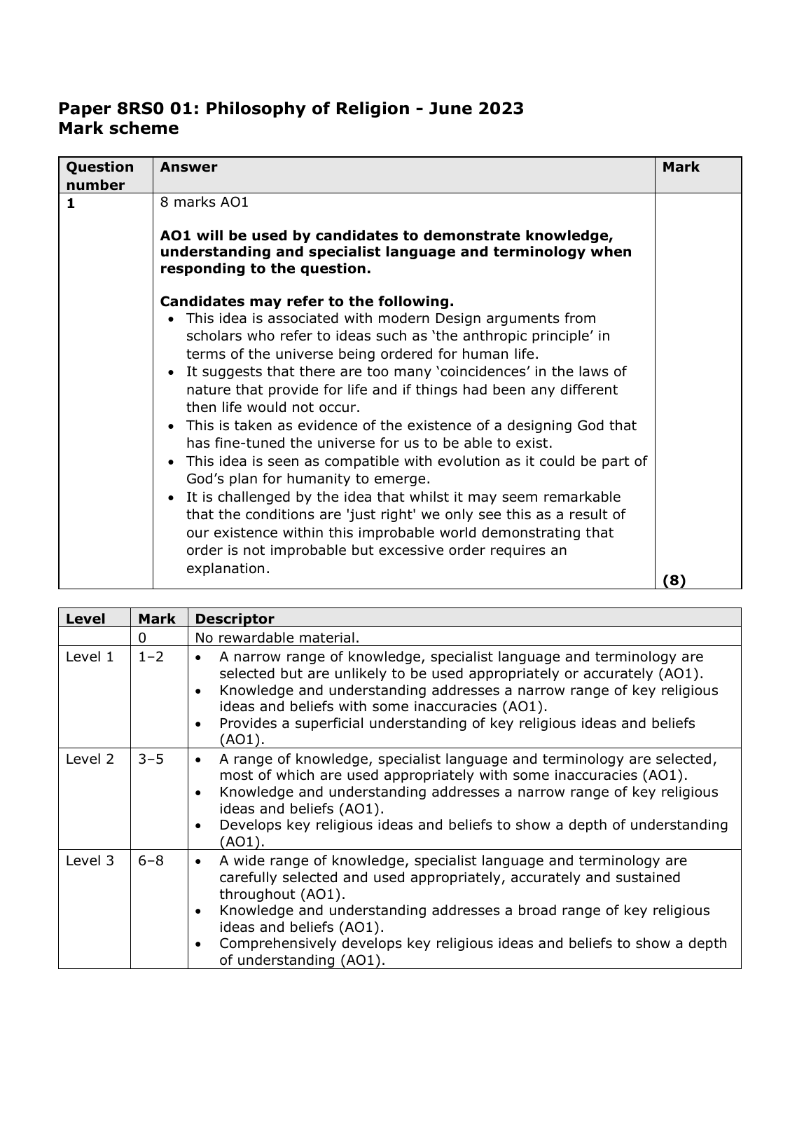 PEARSON EDEXCEL AS LEVEL Religious Studies PAPER 1 2023 MARK SCHEME (8RS0/01: Philosophy of Religion). DOWNLOAD OFFICIAL AND VERIFIED EDEXCEL PEARSON AS LEVEL Religious Studies PAPER 1 2023 MARK SCHEME on www.leakedexams.com INSTANTLY.