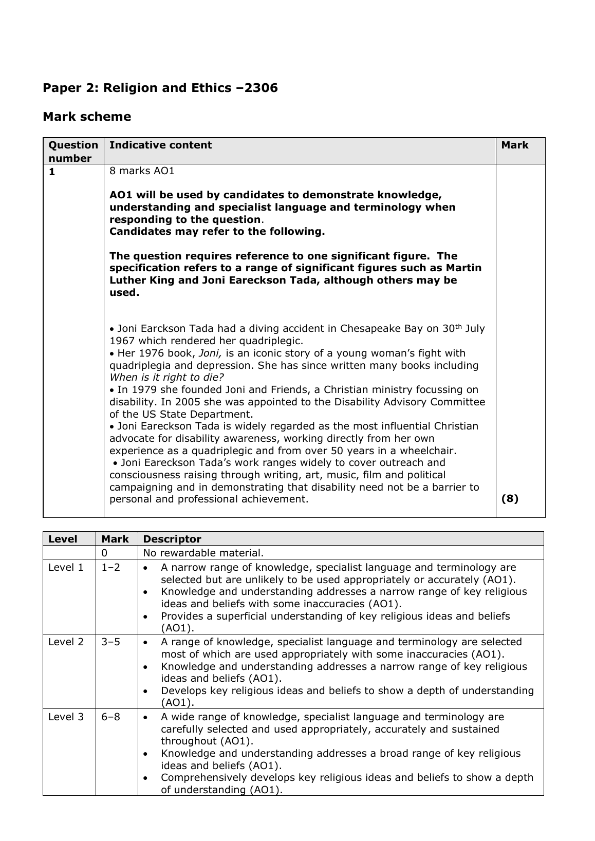 PEARSON EDEXCEL A LEVEL Religious Studies PAPER 2 2023 MARK SCHEME (9RS0/02: Religion and Ethics). DOWNLOAD OFFICIAL AND VERIFIED EDEXCEL PEARSON A LEVEL Religious Studies PAPER 2 2023 MARK SCHEME on www.leakedexams.com INSTANTLY.