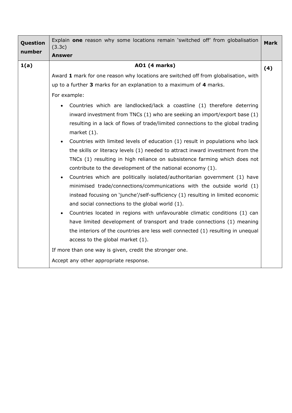 PEARSON EDEXCEL A LEVEL Geography PAPER 2 2023 MARK SCHEME (9GE0/02)