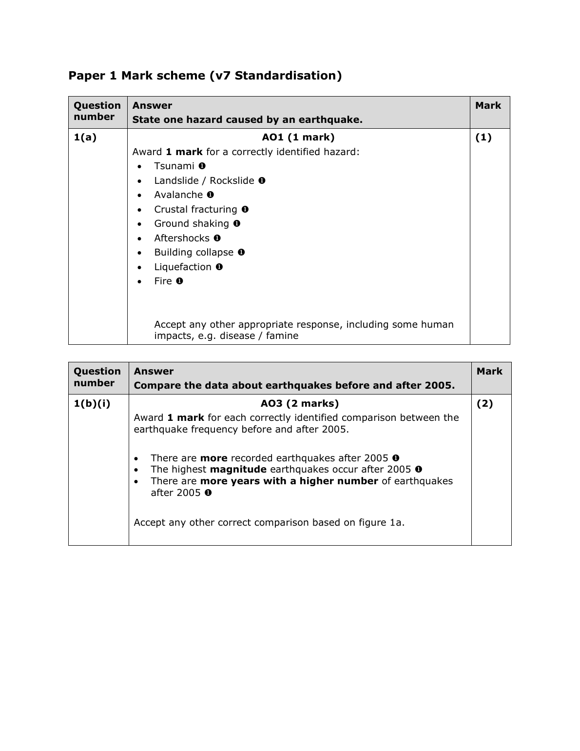 PEARSON EDEXCEL AS LEVEL Geography PAPER 1 2023 MARK SCHEME (8GE0/01: Dynamic Landscapes)