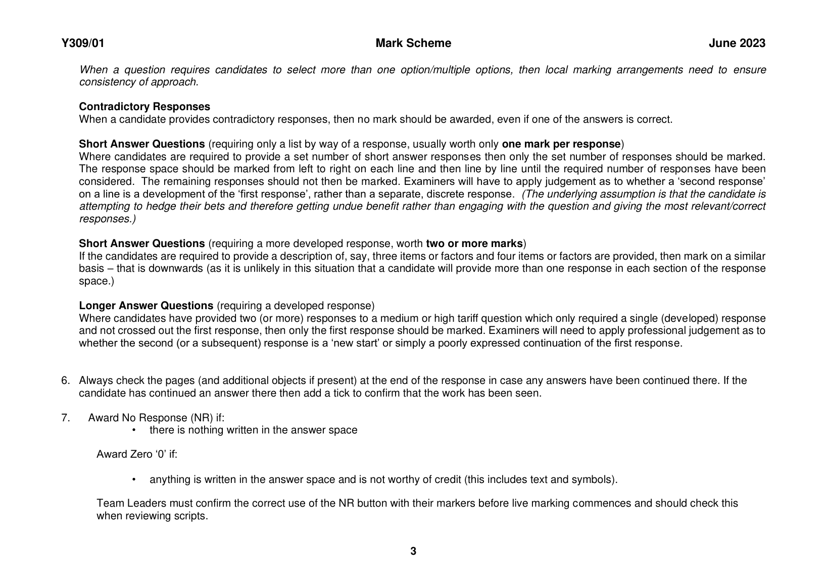 OCR GCE A LEVEL HISTORY A PAPER 1 MARK SCHEME 2023 (Y309/01: The Ascendancy of the Ottoman Empire 1453–1606)
