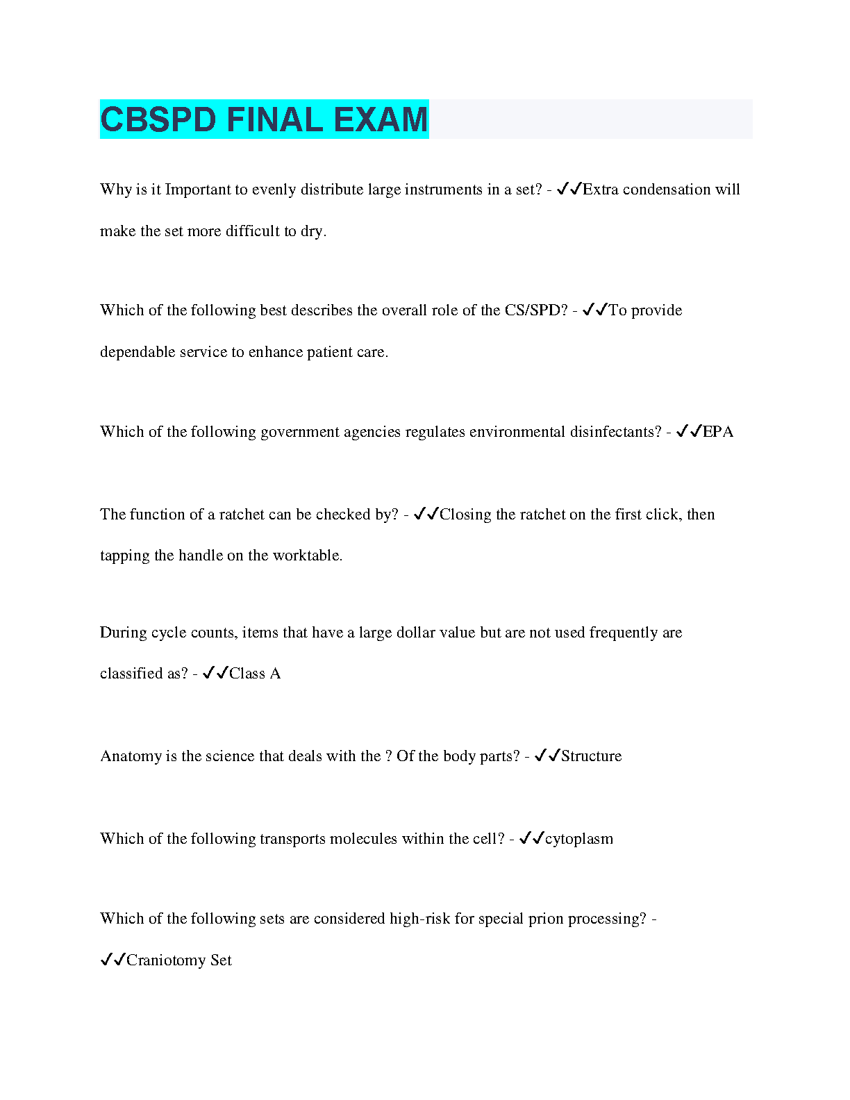 CBSPD FINAL EXAM 100 Questions with 100% Correct Answers 2024