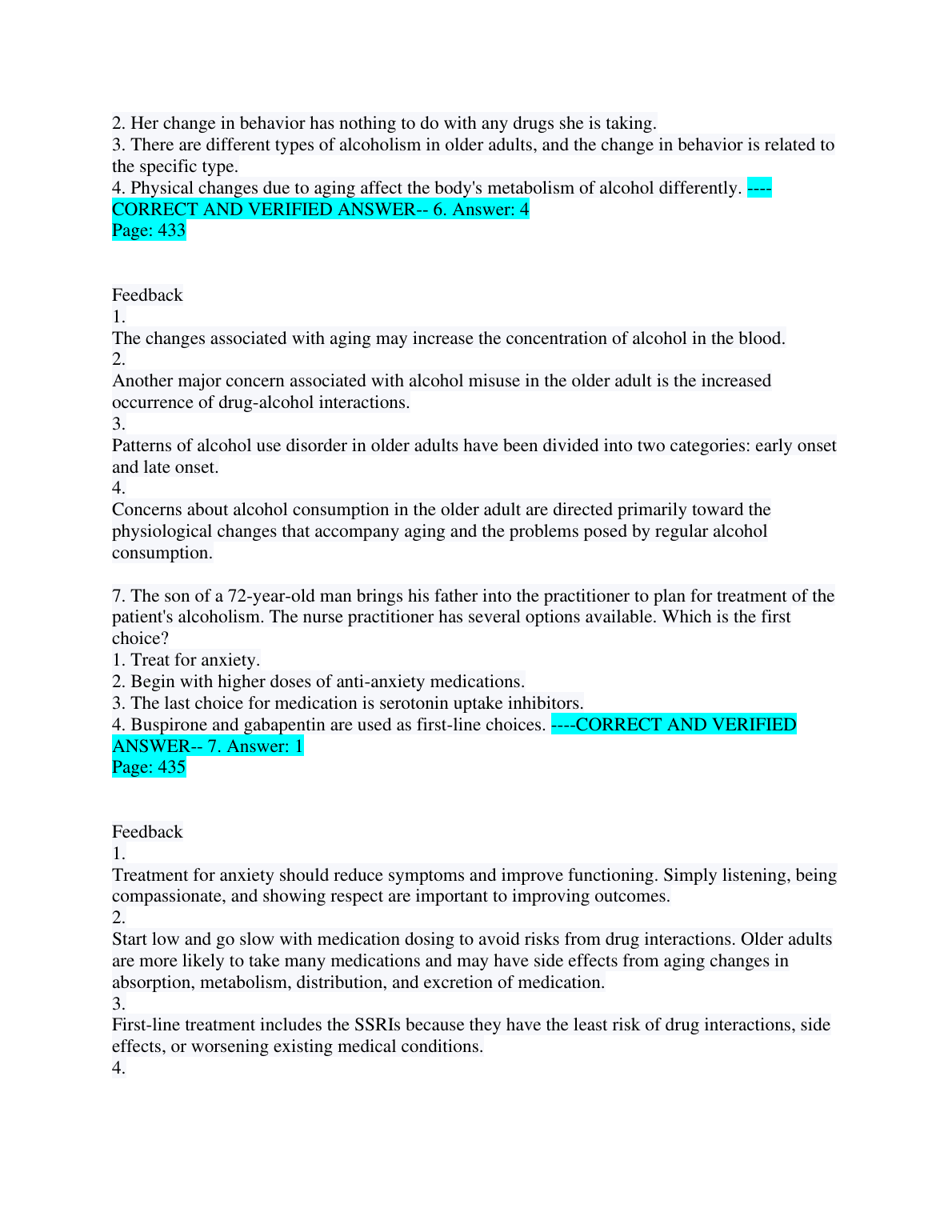 HESI GERIATRICS EXAM TEST BANK 300 QUESTIONS WITH 100% CORRECT ANSWERS AND RATIONALES UPDATED 2024