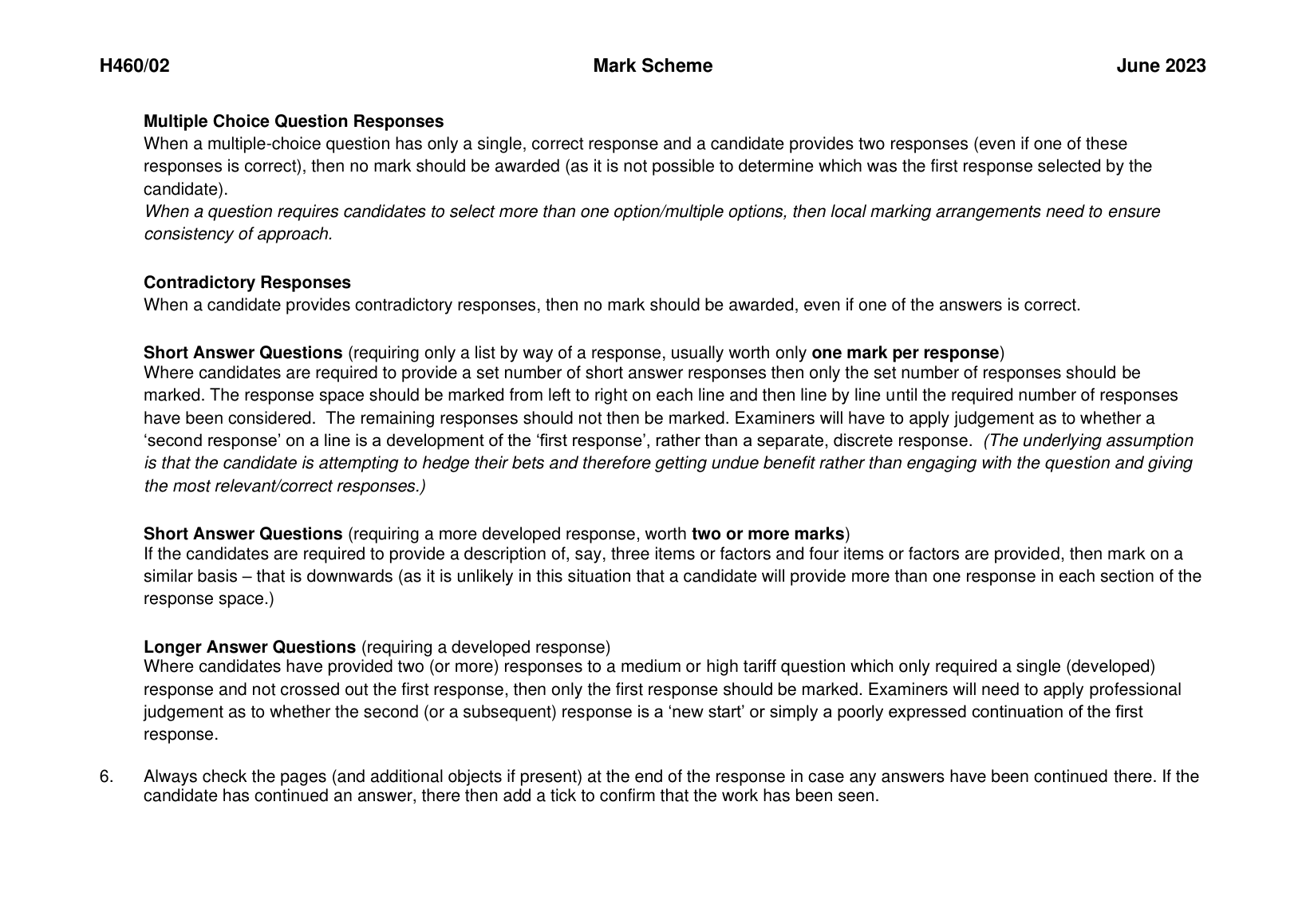 OCR GCE A LEVEL ECONOMICS PAPER 2 MARK SCHEME 2023 (H460/02: Macroeconomics)