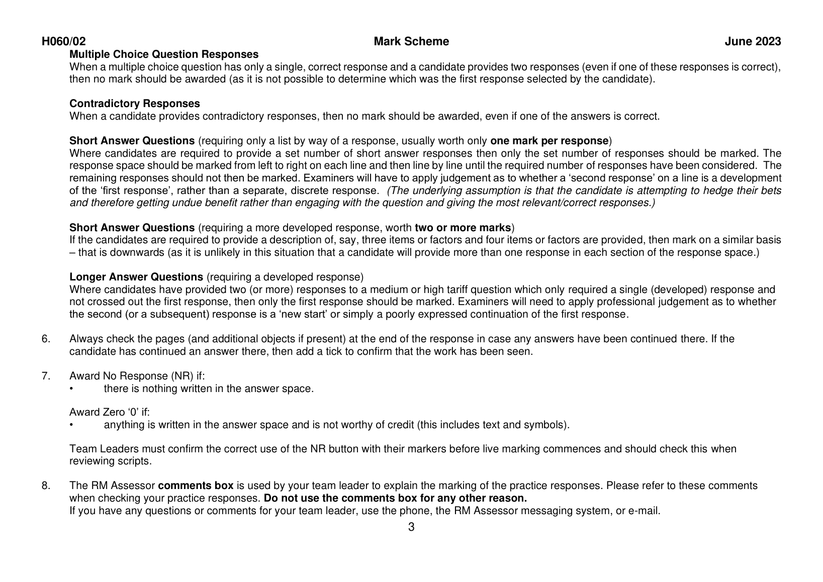OCR GCE AS LEVEL ECONOMICS PAPER 2 MARK SCHEME 2023 (H060/02: Macroeconomics)