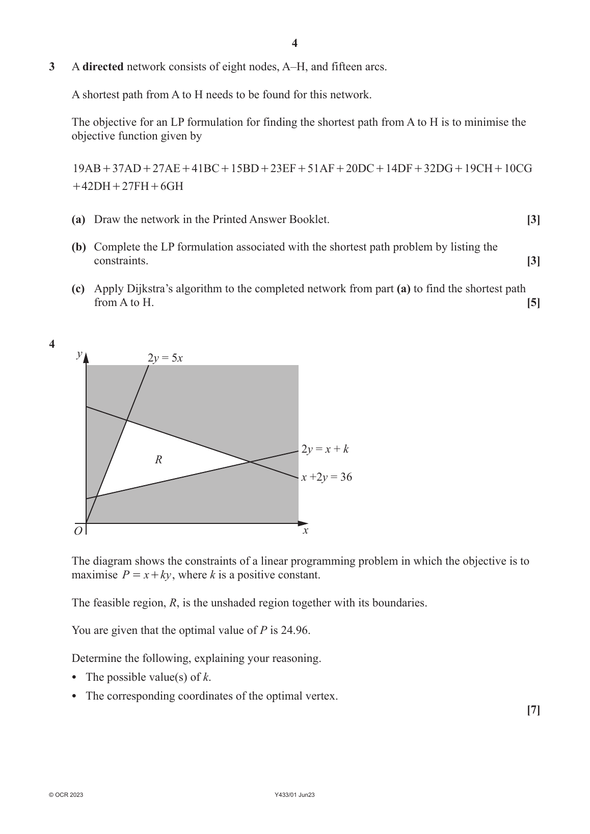 OCR GCE A LEVEL FURTHER MATHEMATICS B PAPER 1 QUESTION PAPER 2023 (Y433/01: Modelling with Algorithms). DOWNLOAD OFFICIAL AND VERIFIED OCR A LEVEL FURTHER MATHEMATICS B PAPER 1 QUESTION PAPER 2023 ON www.leakedexams.com.