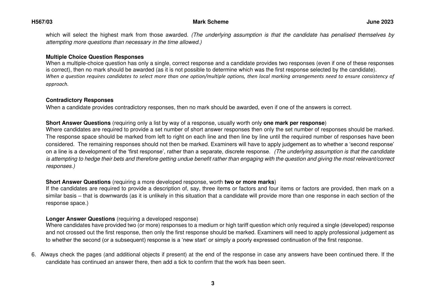 OCR GCE A LEVEL PSYCHOLOGY PAPER 3 MARK SCHEME 2023 (H567/03: Applied psychology)