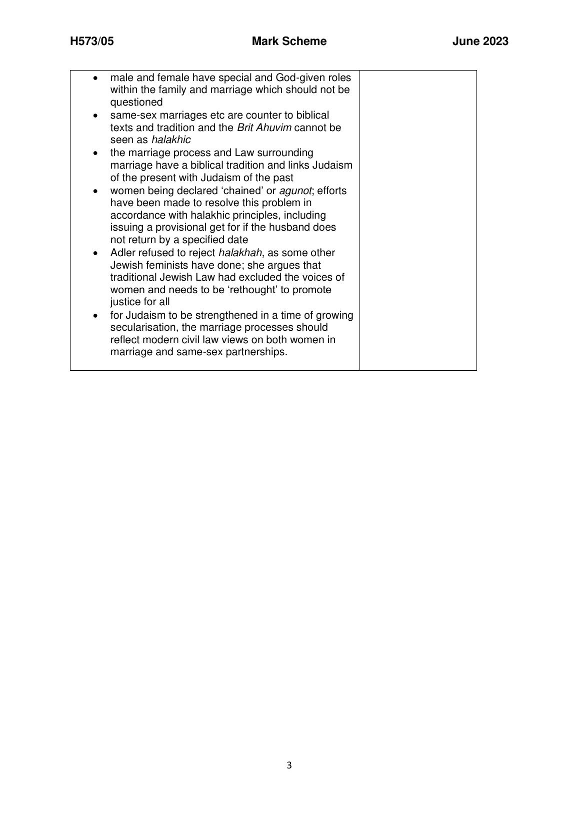 OCR GCE A LEVEL RELIGIOUS STUDIES PAPER 5 MARK SCHEME 2023 (H573/05: Developments in Jewish thought)
