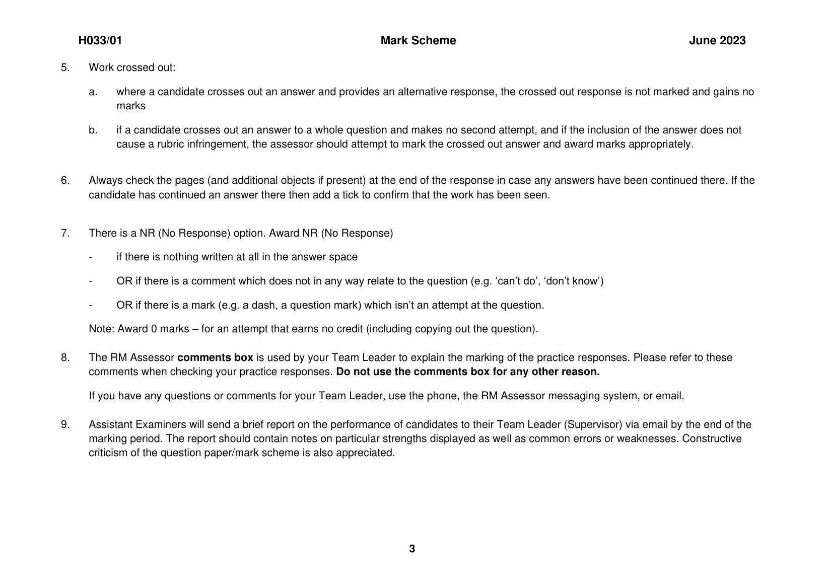 OCR GCE AS LEVEL CHEMISTRY B PAPER 1 MARK SCHEME 2023 (H033/01: Foundations of chemistry)