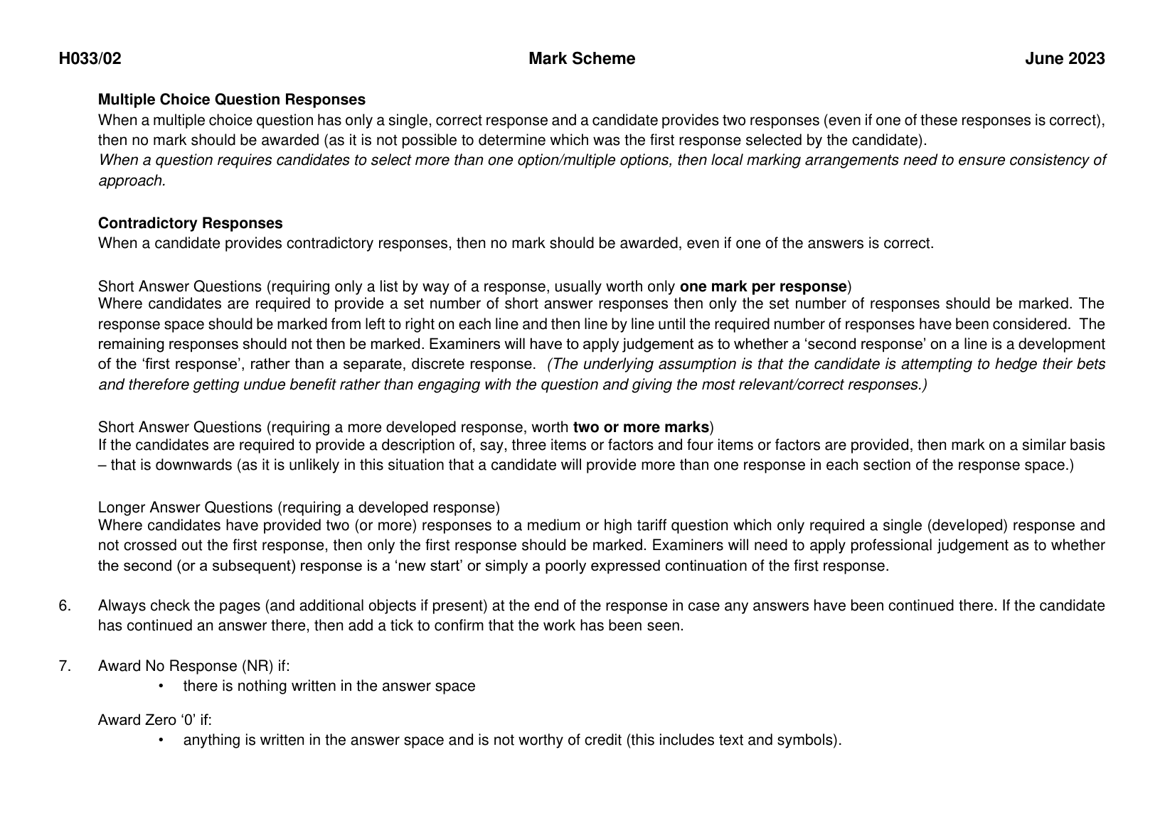 OCR GCE AS LEVEL CHEMISTRY B PAPER 2 MARK SCHEME 2023 (H033/02: Chemistry in depth)