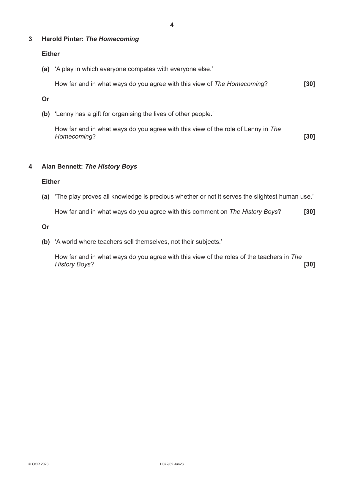OCR GCE AS LEVEL ENGLISH LITERATURE PAPER 2 QUESTION PAPER 2023 (H072/02: Drama and prose post-1900)