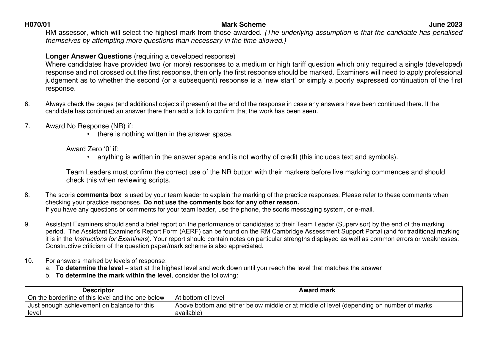 OCR GCE AS LEVEL ENGLISH LANGUAGE PAPER 1 MARK SCHEME 2023 (H070/01: Exploring language)