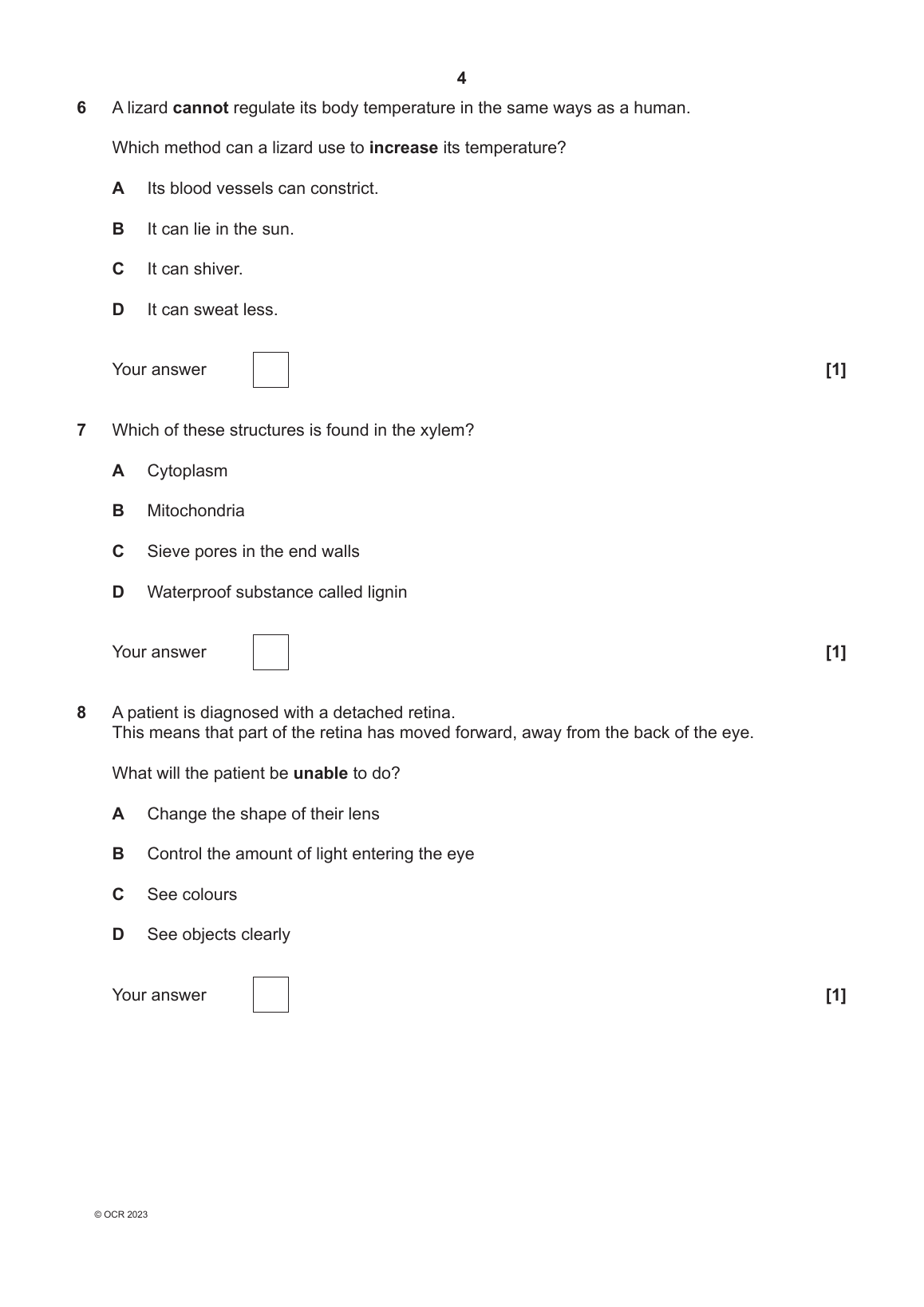OCR GCSE BIOLOGY A PAPER 1 QUESTION PAPER 2023 (J247/01: Foundation Tier)