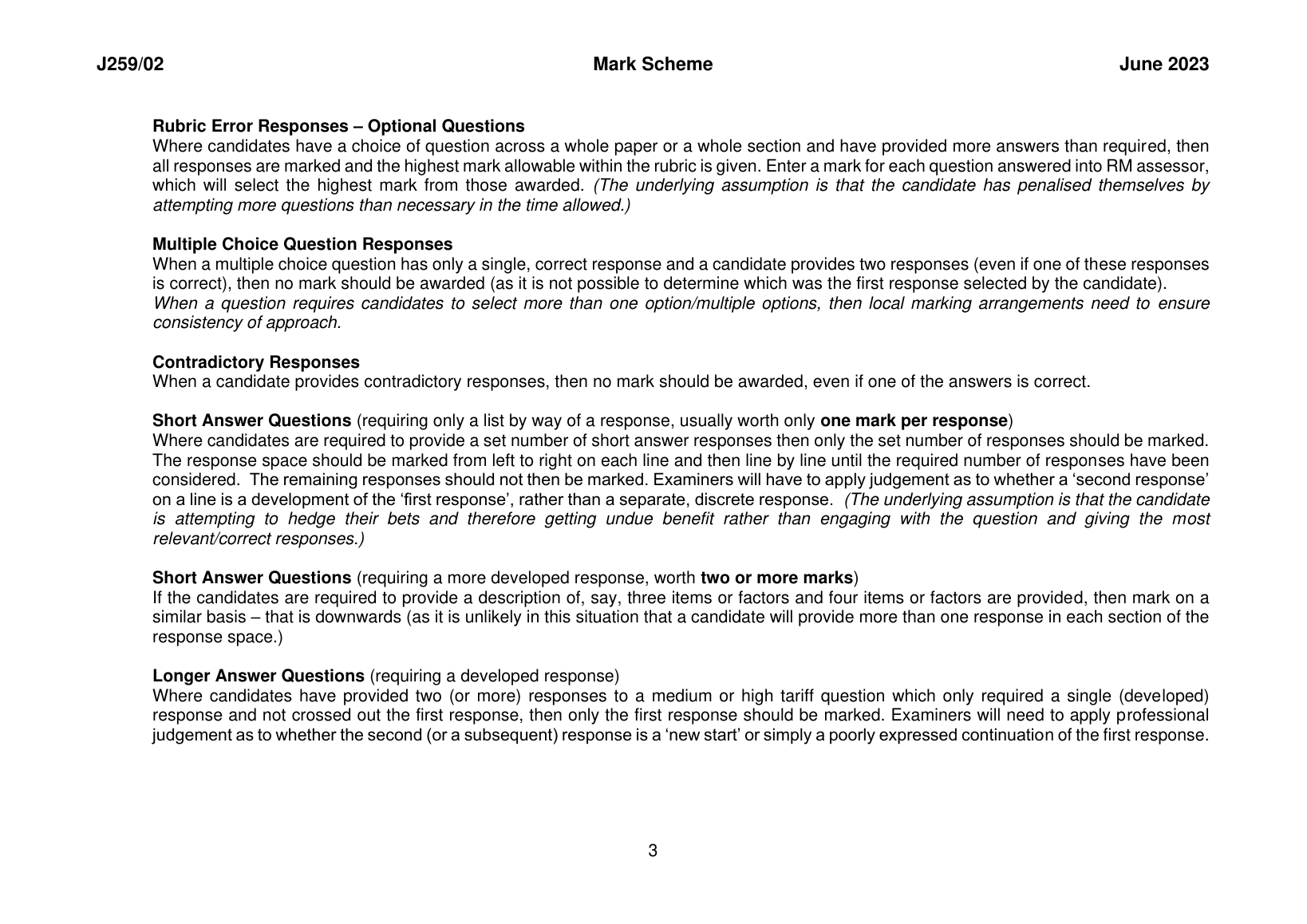 OCR GCSE PHYSICS B PAPER 2 MARK SCHEME 2023 (J259/02: Depth in physics (Foundation Tier))