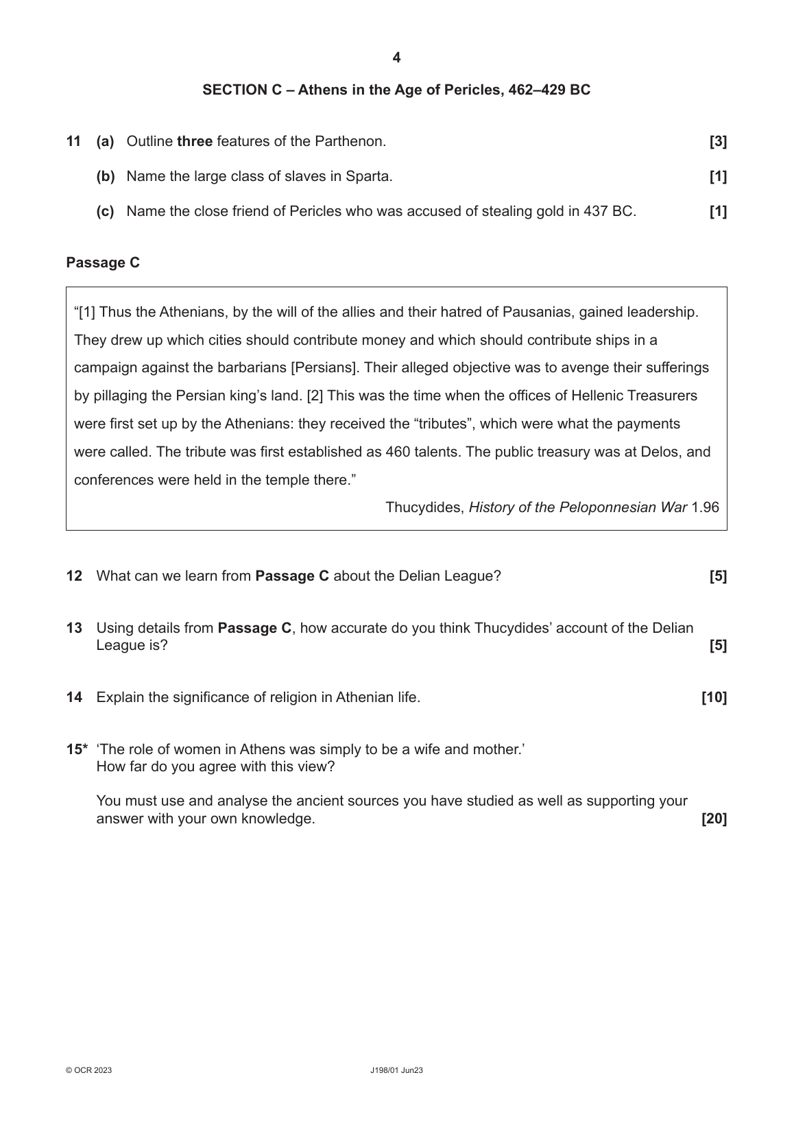 OCR GCSE ANCIENT HISTORY PAPER 1 QUESTION PAPER 2023 (J198/01: Greece and Persia)