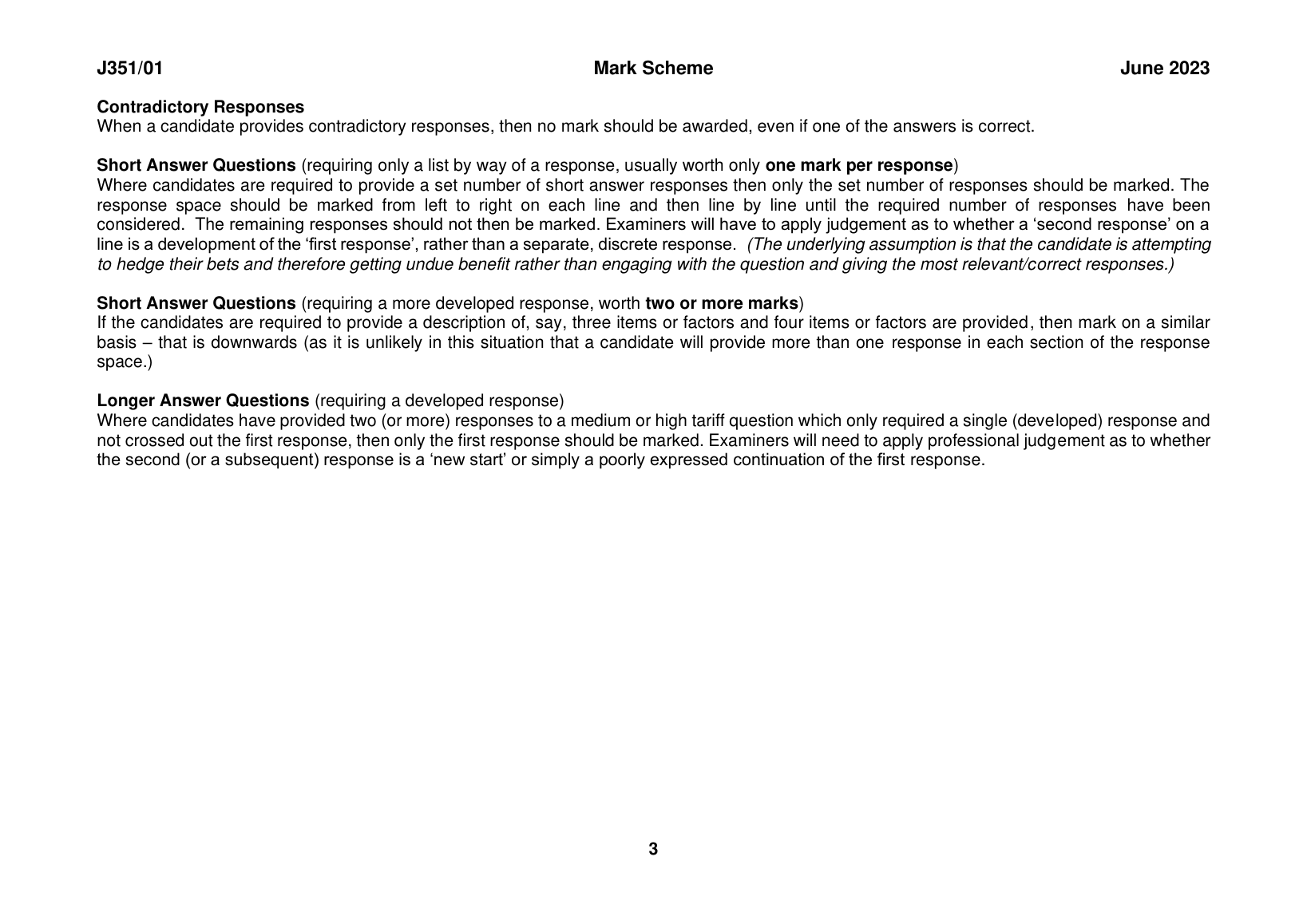 OCR GCSE ENGLISH LANGUAGE PAPER 1 MARK SCHEME 2023 (J351/01: Communicating information and ideas)