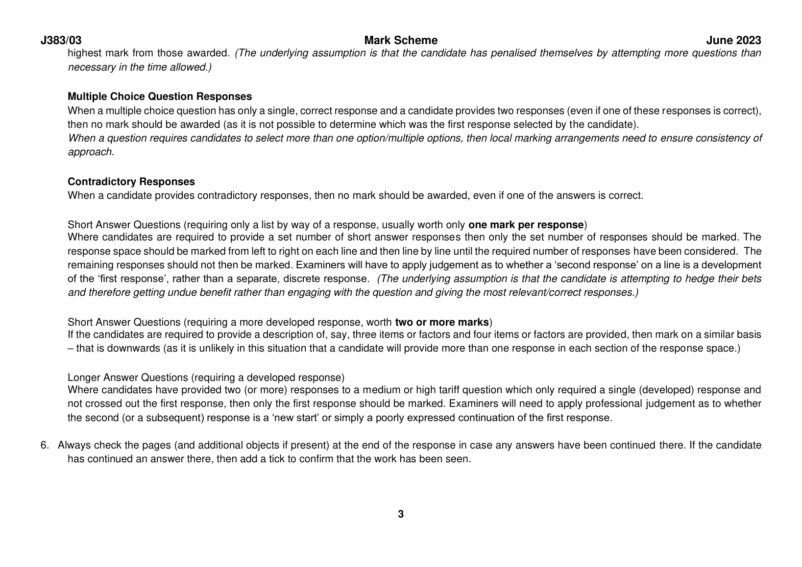 OCR GCSE GEORGRAPHY A PAPER 3 MARK SCHEME 2023 (J383/03: Geographical Skills)