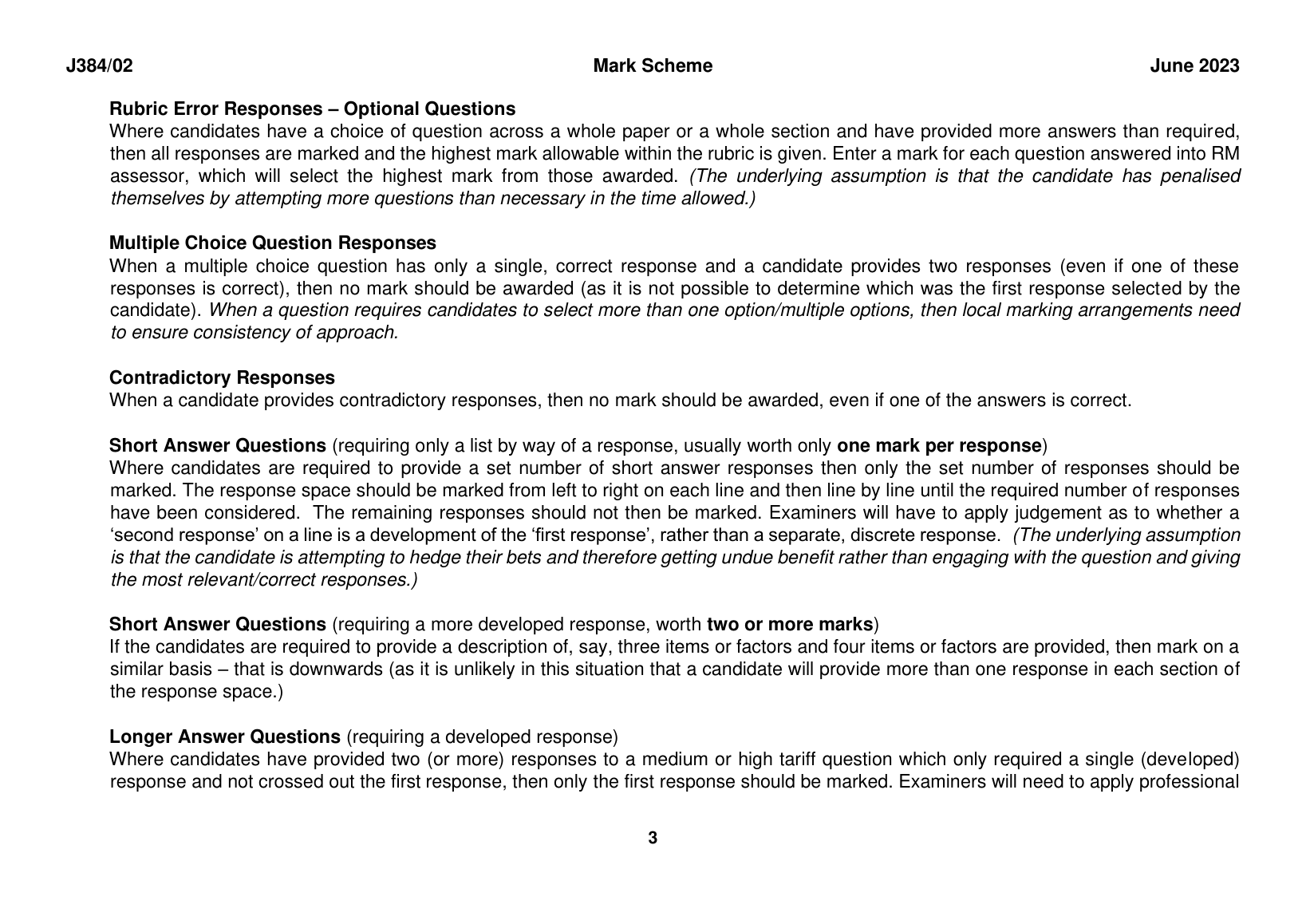 OCR GCSE GEORGRAPHY B PAPER 2 MARK SCHEME 2023 (J384/02: People and Society)