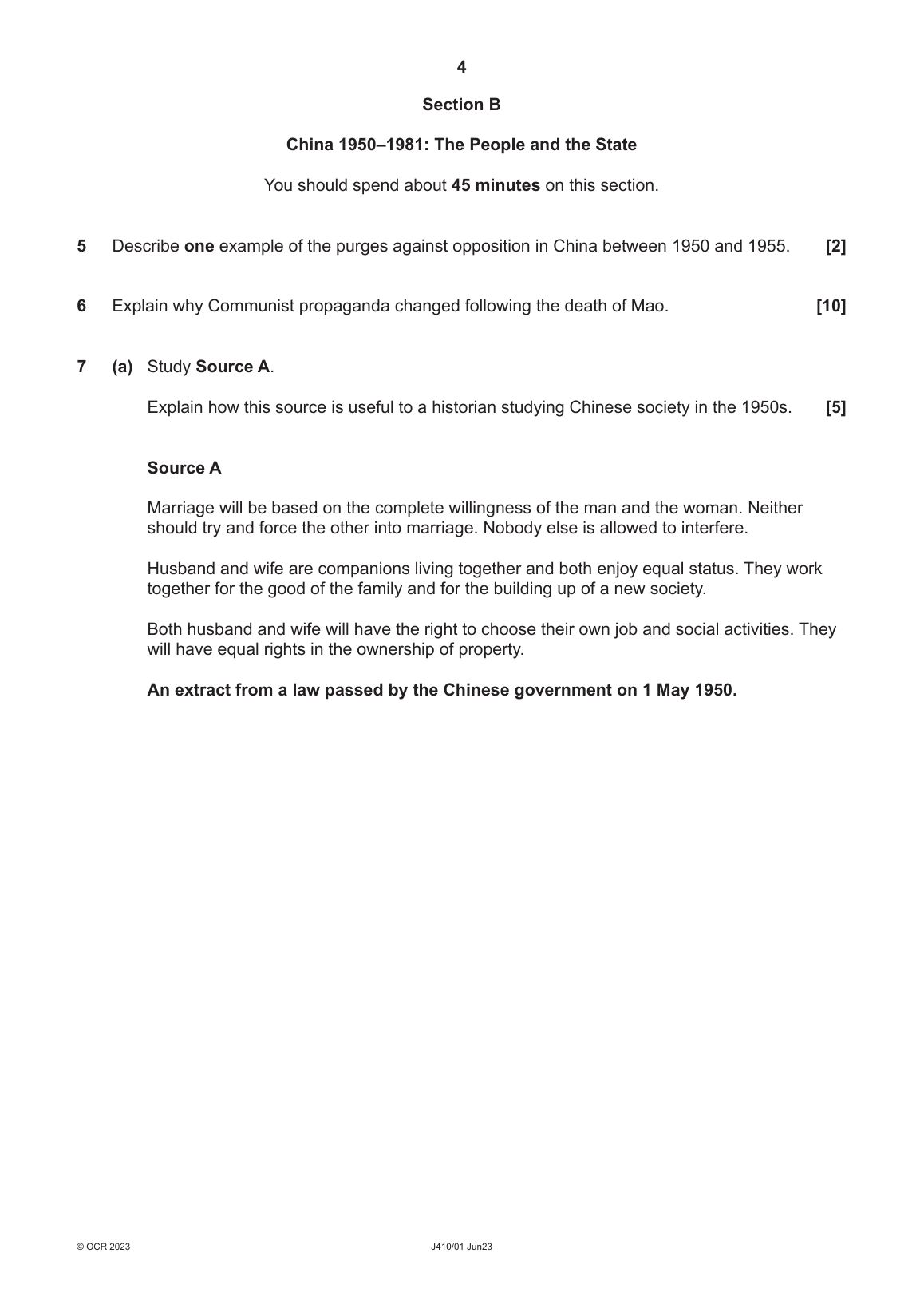 OCR GCSE HISTORY A PAPER 1 QUESTION PAPER 2023 (J410/01: Â International Relations: the changing international order 1918âc.1975 with China 1950â1981: The People and the State). DOWNLOAD OFFICIAL AND VERIFIED OCR GCSE HISTORY A PAPER 1 QUESTION PAPER 2023 ON www.leakedexams.com.