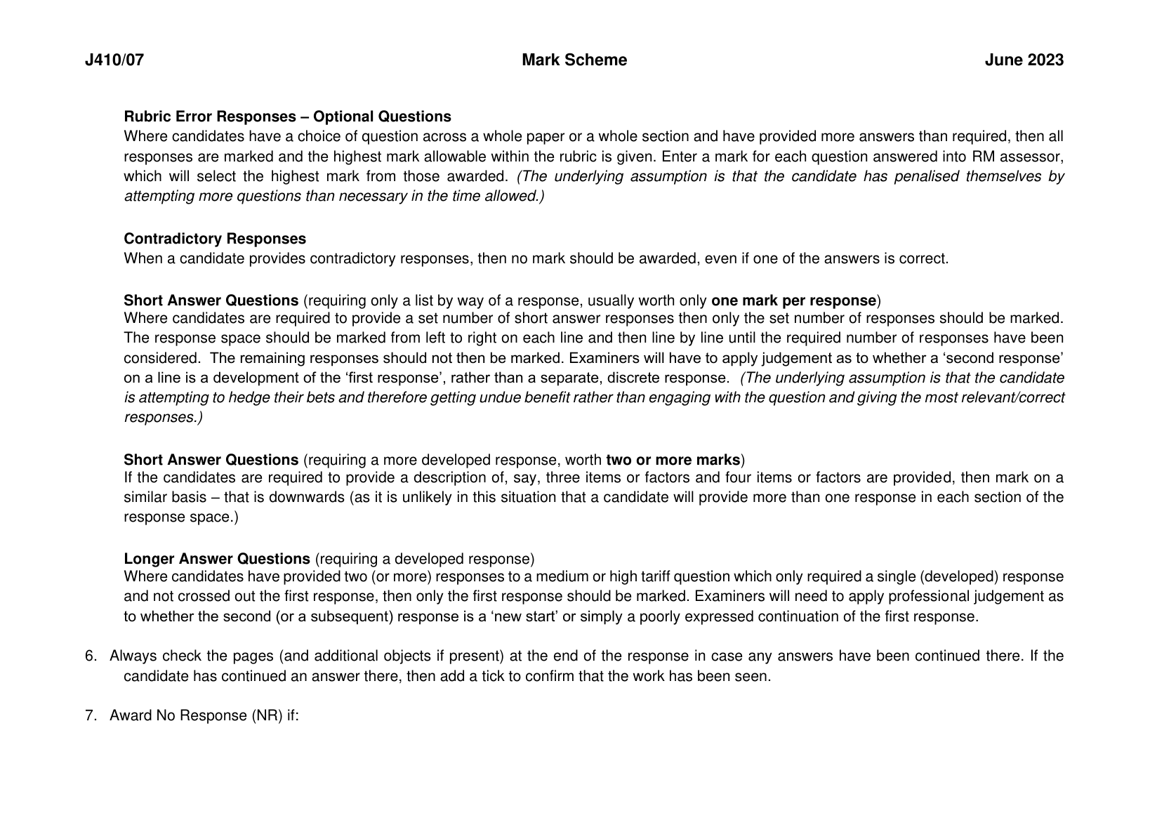 OCR GCSE HISTORY A PAPER 7 MARK SCHEME 2023 (J410/07: The USA 1945-1974: The People and the State). DOWNLOAD OFFICIAL AND VERIFIED OCR GCSE HISTORY A PAPER 7 MA...