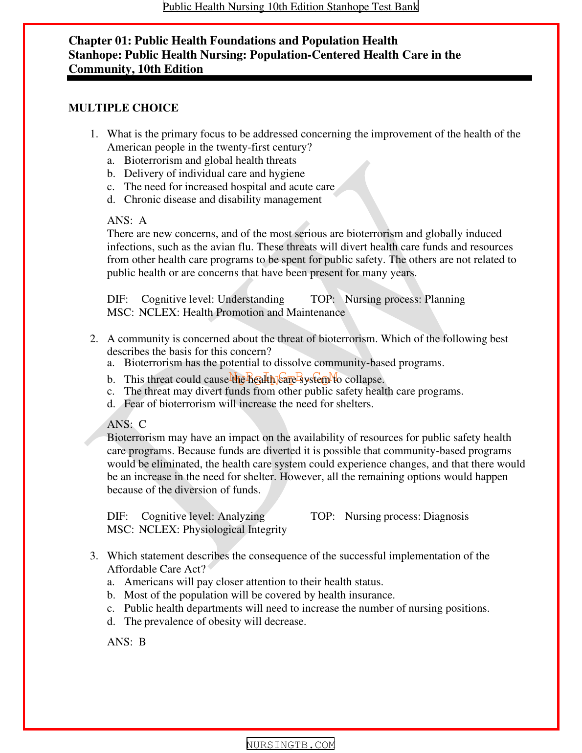 Test Bank for Public Health Nursing: Population-Centered Health Care in the Community 10th Edition by Marcia Stanhope and Jeanette Lancaster