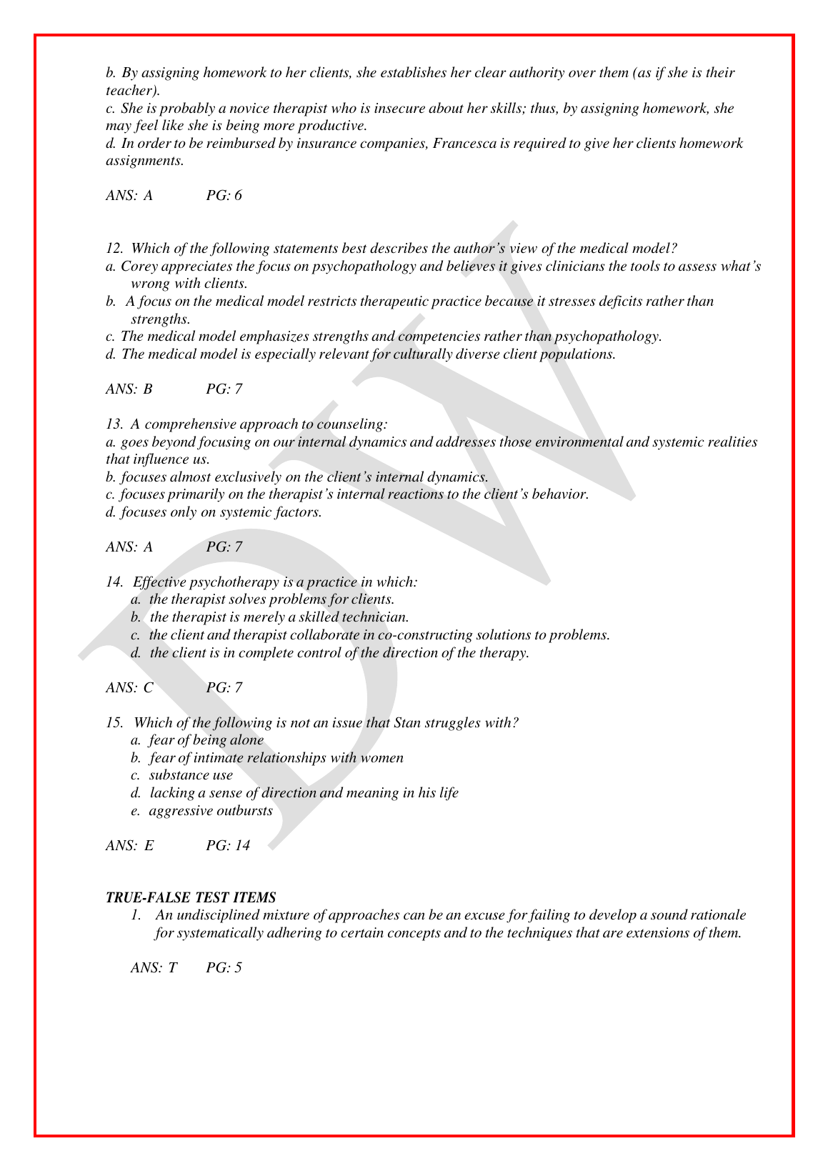 Test Bank for Theory and Practice of Counseling and Psychotherapy 10th Edition by Corey