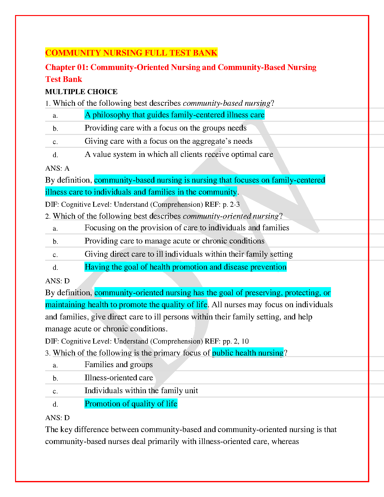 Test Bank for RN Community Health Nursing by ATI Nursing Education