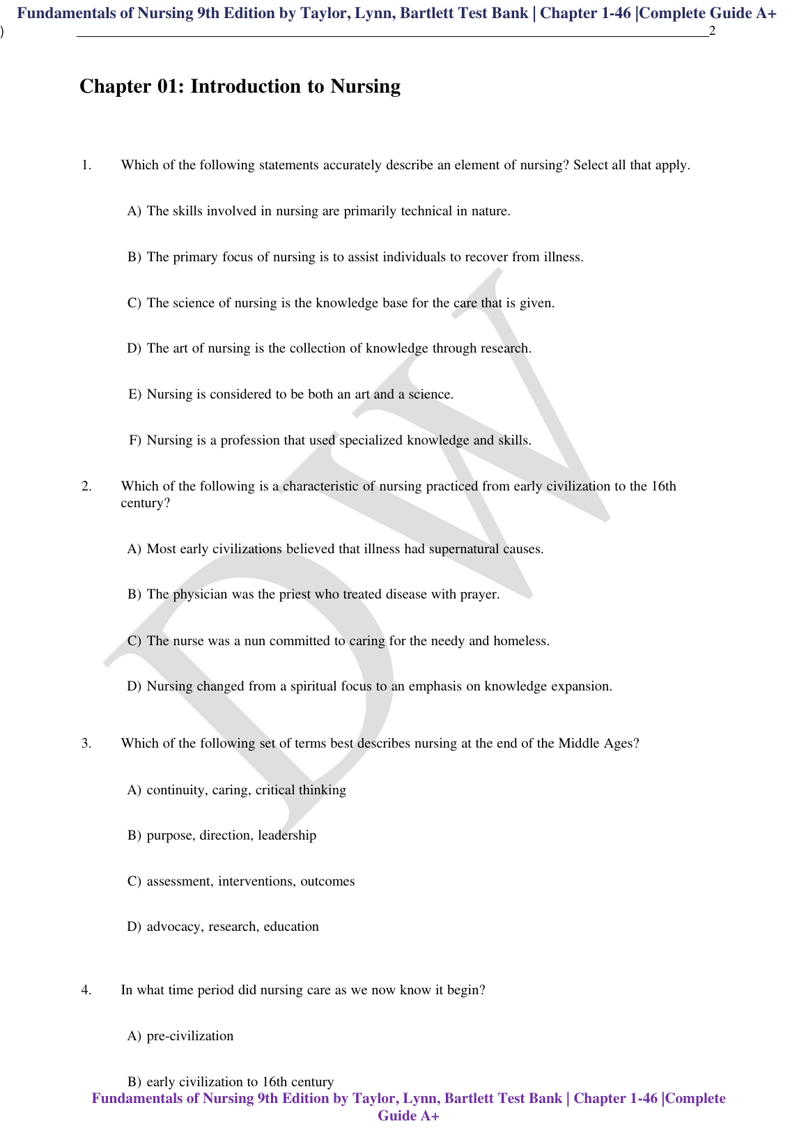 TEST BANK for Fundamentals of Nursing: The Art and Science of Person-Centered Care 9th Edition by Carol R. Taylor, Pamela B Lynn, and Jennifer L Bartlett