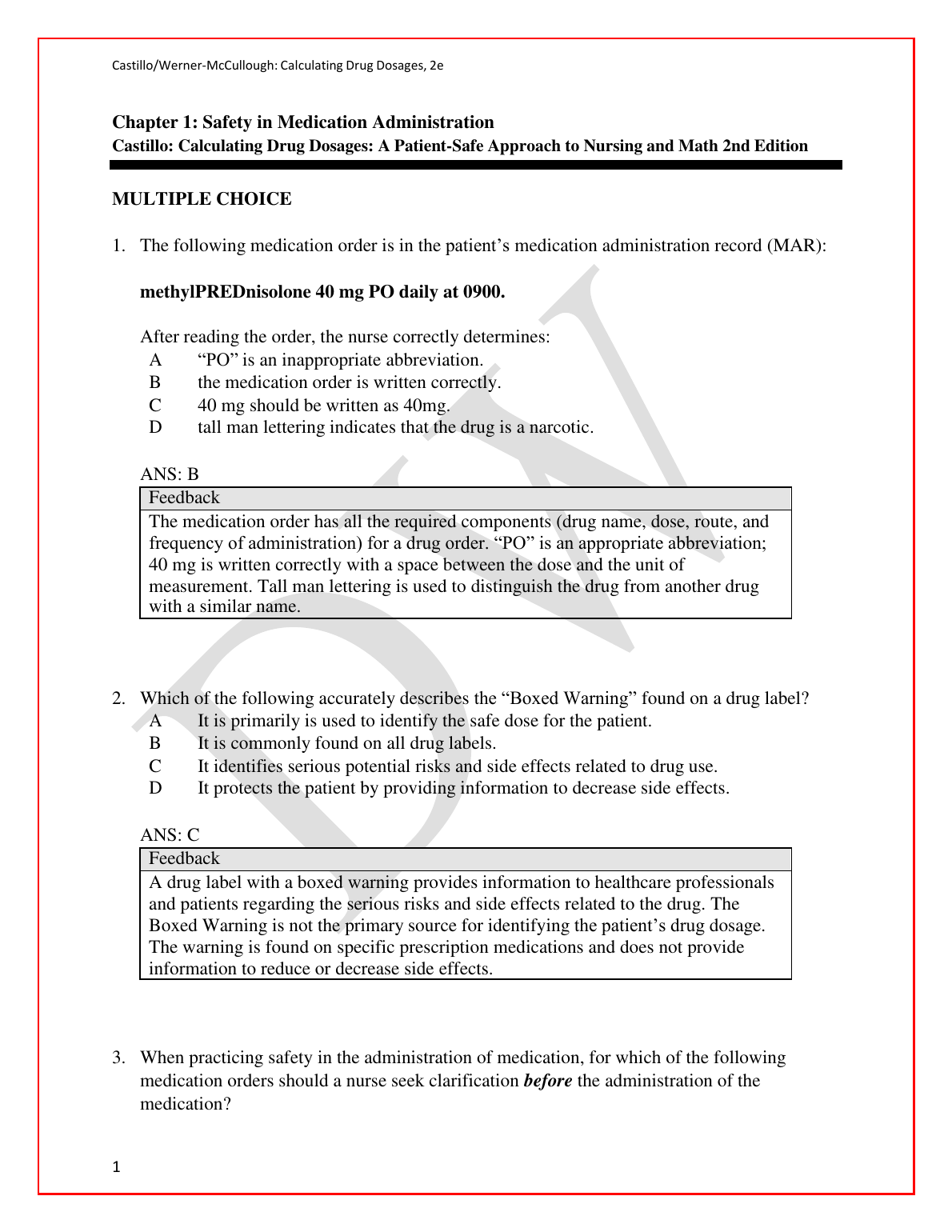 Test Bank for Calculating Drug Dosages A Patient-Safe Approach to Nursing and Math Second Edition by Maryanne Castillo, Sandra Luz Martinez De and Werner-McCullough Test Bank