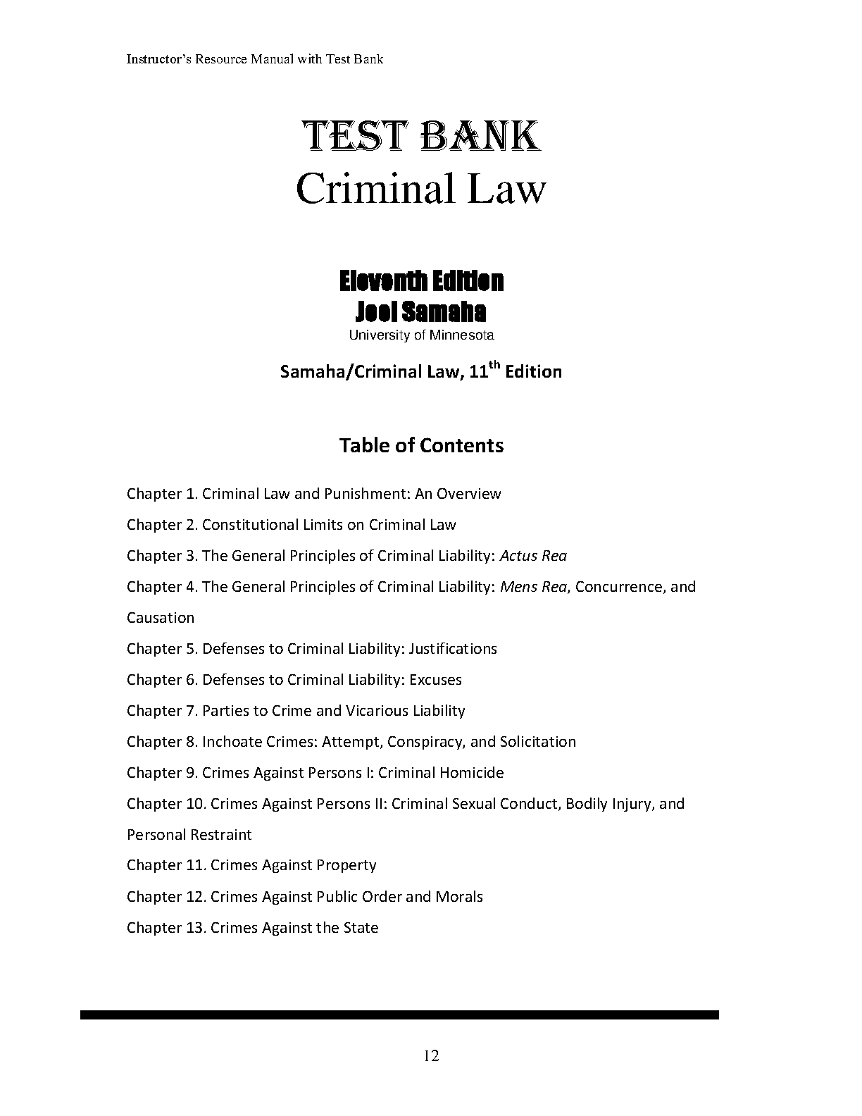 Test Bank for Criminal Law 11th Edition by Joel Samaha