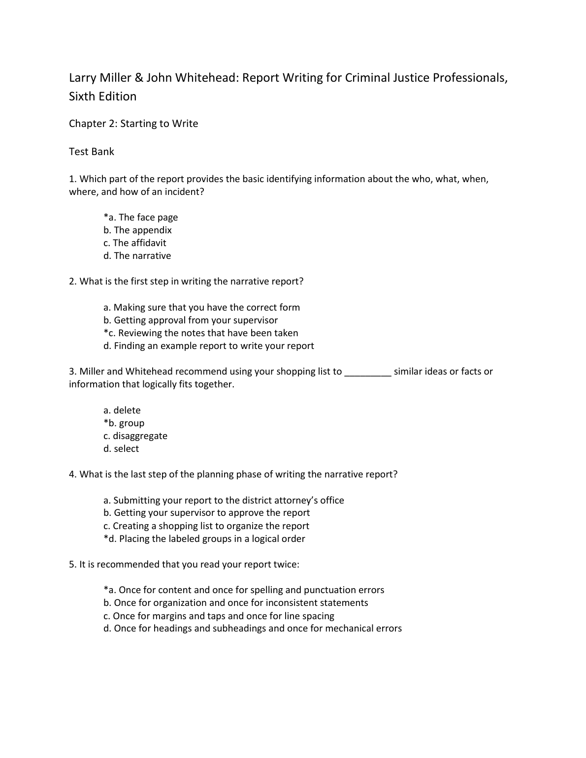 Test Bank For Report Writing for Criminal Justice Professionals, 6th Edition By Larry Miller and John Whitehead