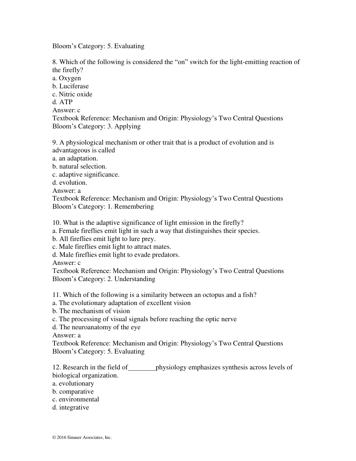 TEST BANK TO ACCOMPANY ANIMAL PHYSIOLO...