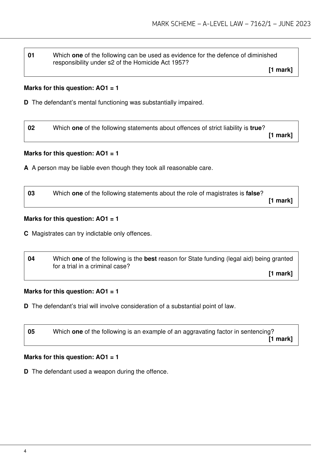 AQA A LEVEL LAW MARK SCHEME PAPER 1 JUNE 2023 (7162/1)