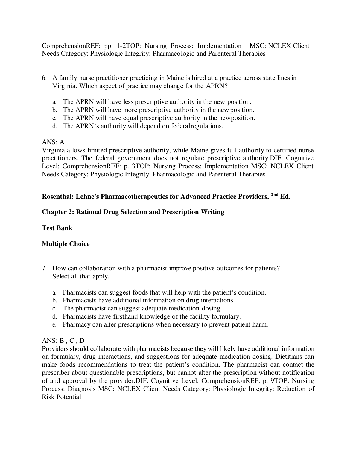 TEST BANK LEHNEâS PHARMACOTHERAPEUTICS FOR ADVANCED PRACTICE NURSES AND