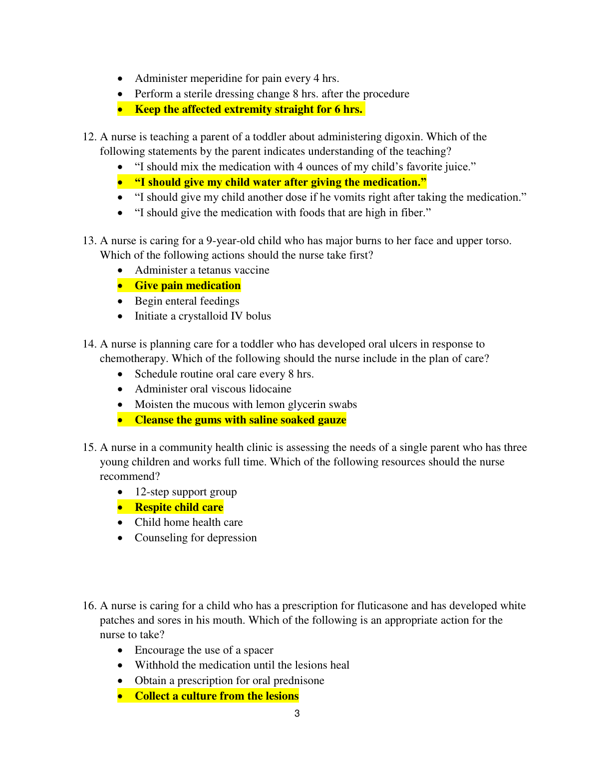 ï· Perform a sterile dressing change 8 hrs. after the procedure ï· Keep the affected extremity straight for 6 hrs.