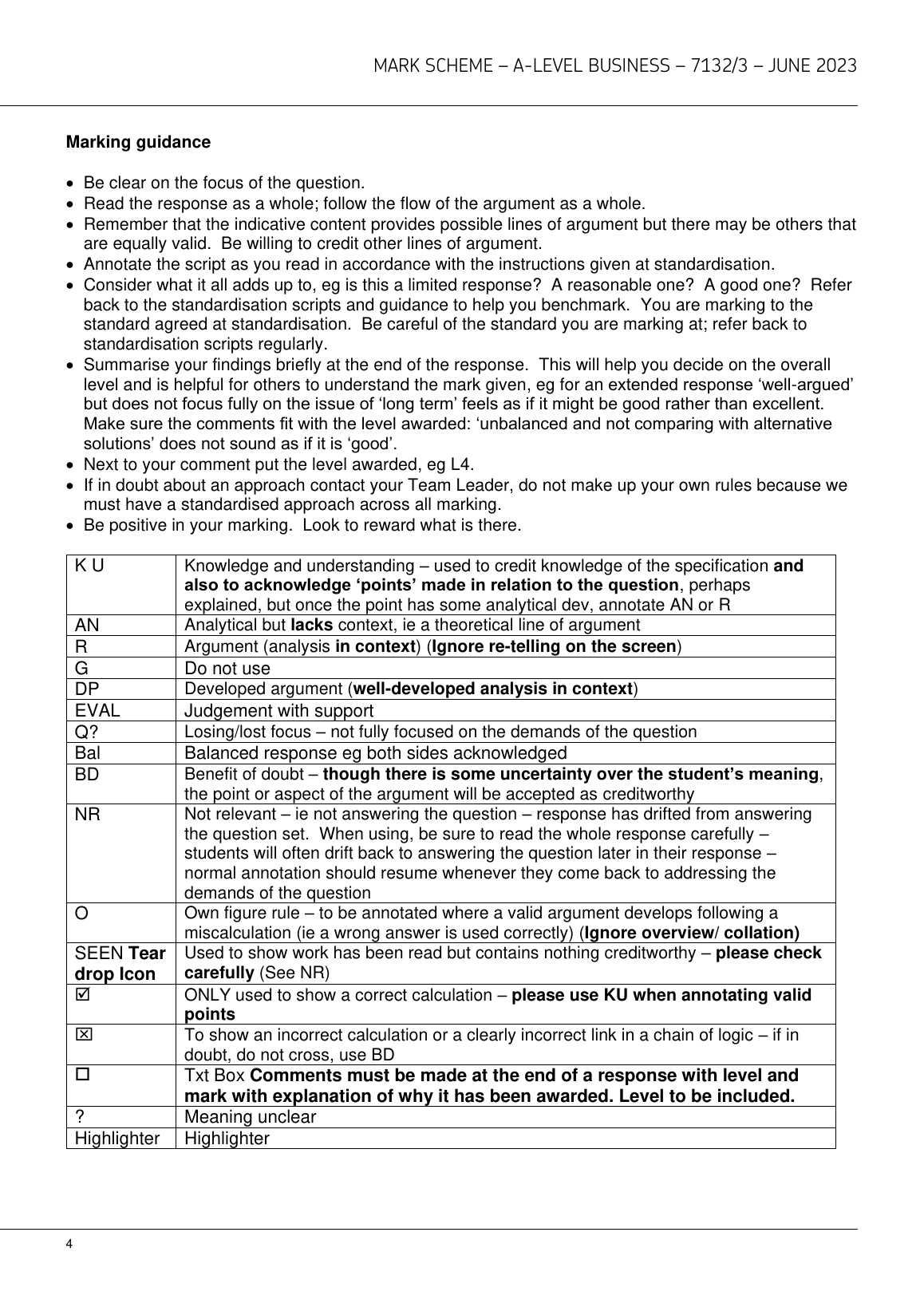 AQA A LEVEL BUSINESS MARKSCHEME PAPER 3 2023 (7132/3)