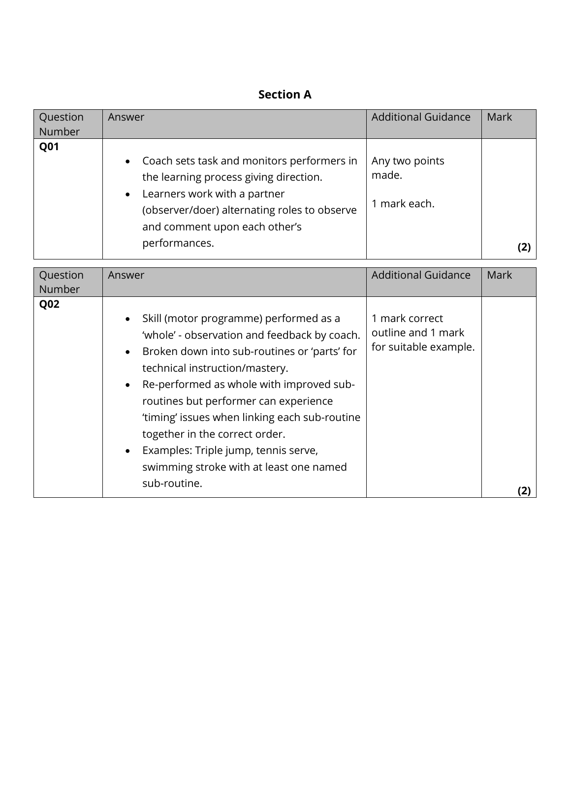 Pearson Edexcel Advanced Level In Physical Education (9PE0)Paper 02: Psychological and Social Principles of Physical Education -2023 MARK SCHEME