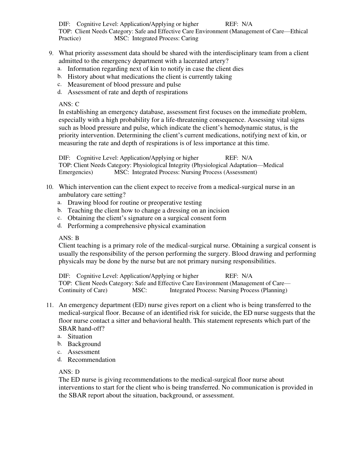 TOP: Client Needs Category: Safe and Effective Care Environment (Management of Careâ