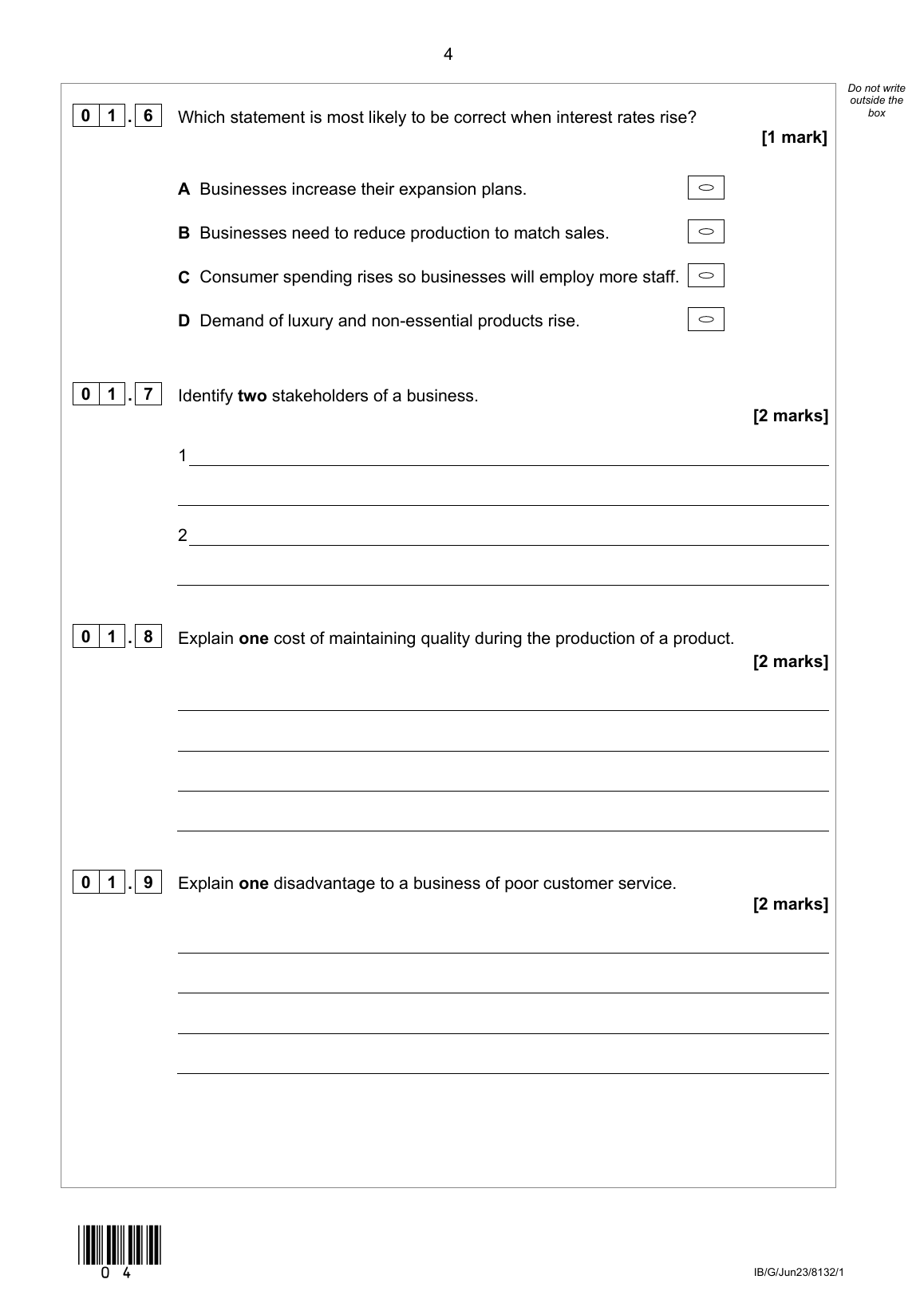 2023 AQA GCSE BUSINESS QUESTION PAPER 1 (8132/1: Influences of operations and HRM on business activity).